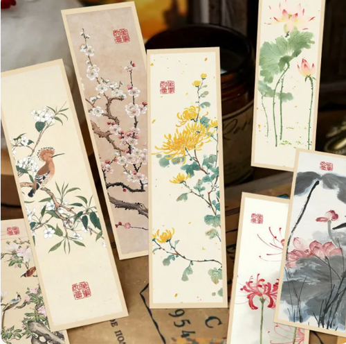 30Pcs Chinese Painting Style Bookmarks-Traditional Ink Painting Design Reading Page Markers for Books and Notebooks Student Stationery